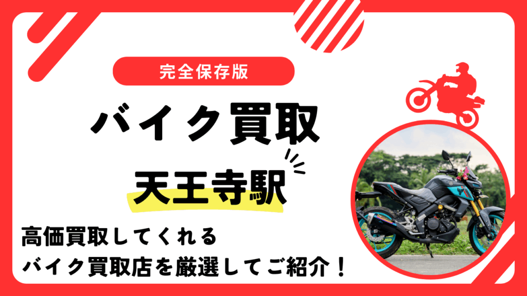 天王寺駅周辺でバイクを売ろうとしている方の中には、「どこの買取店が一番高く買い取ってくれるの?」「忙しくて店舗に持ち込む時間がない」とお悩みの方も多いのではないでしょうか。 近年は、出張買取や即日現金化に対応する便利な業者も増えており、条...